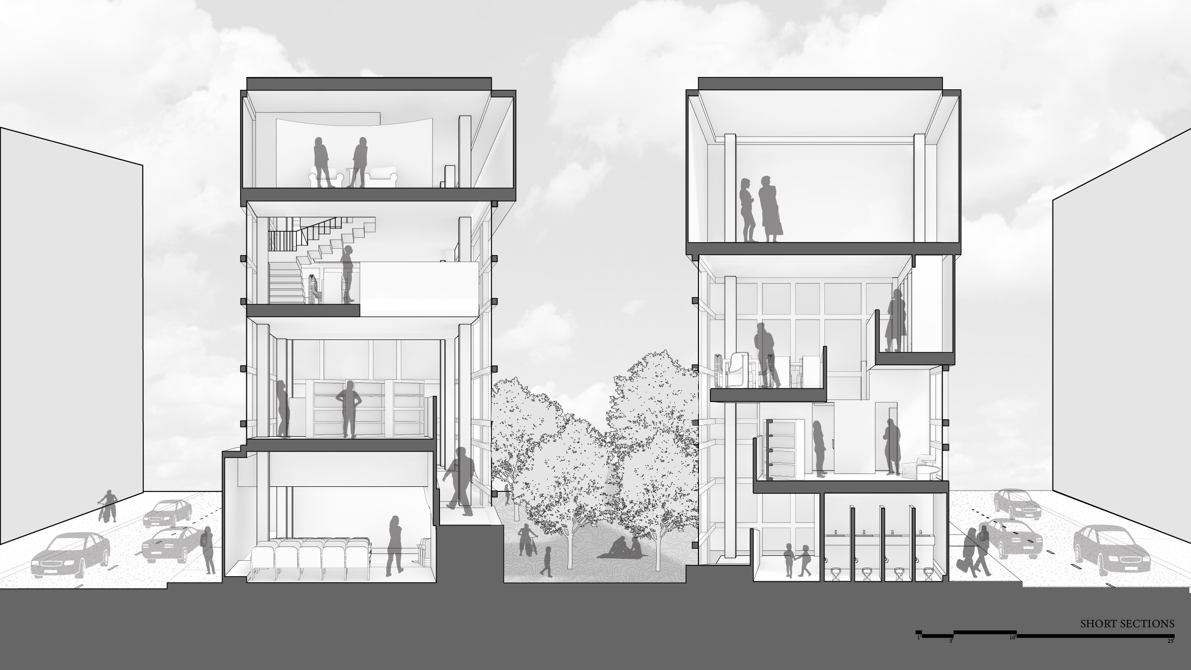 Short sections of proposed building (parameters of 70'x20')