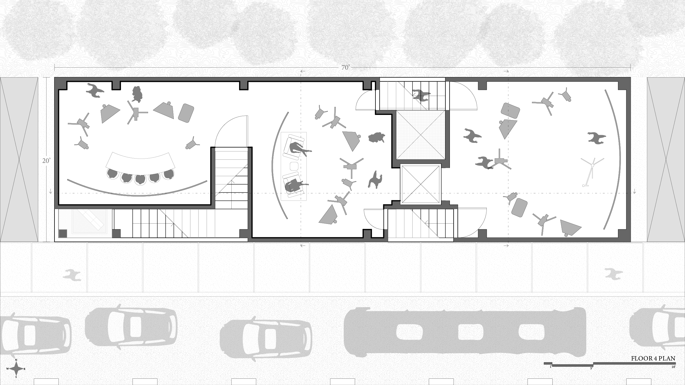 Fourth floor plan of proposed building (parameters of 70'x20') :: Fourth floor includes recording studios