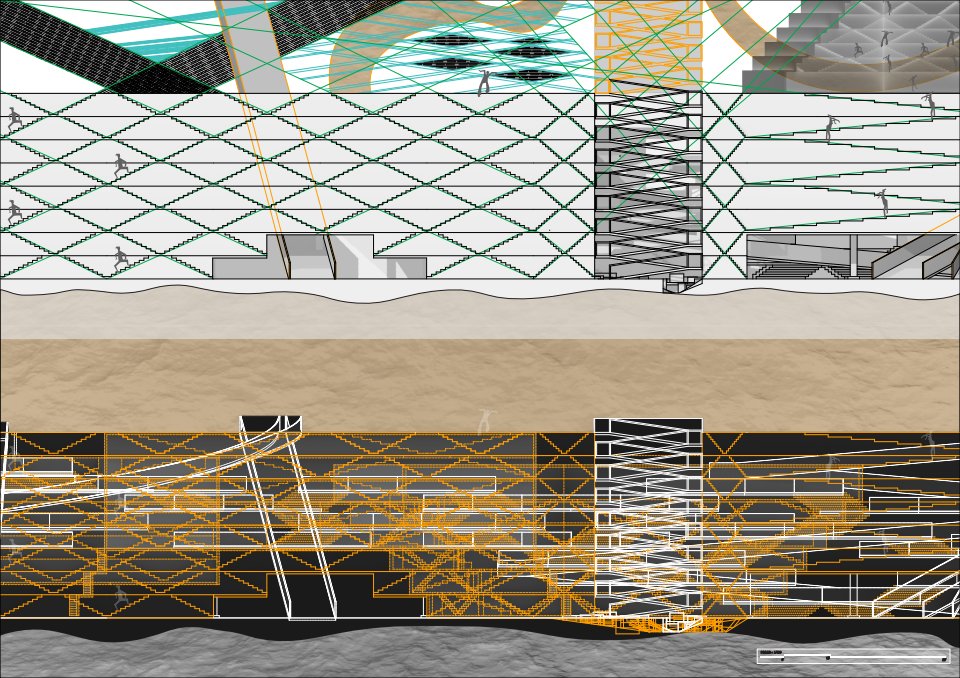 My project is reflective of the continuity of urban contexts in Rome and brings in a new urban texture through the repetition of an element. The repetition of the stepwell acts as a spatial critique of eternity, confronting the embankment wall as a boundary that both protects and isolated. As a concept that is meant to be endless through Rome and all through the Tiber River, it is a framework that resists resolution, allowing memory and imagination to coexist without resolution, and resisting dialogue.