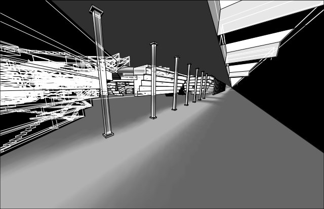 The projection of the existing streets inform the breaks in the embankment wall, and the existing underpass conditions on the site inform the space. While creating a homogeneous relationship on the outside of the endless structure, the inside is meant to be more labyrinthic and a more fluid space. With the infinity of the structure, I am to reflect the infinity of the Eternal City.